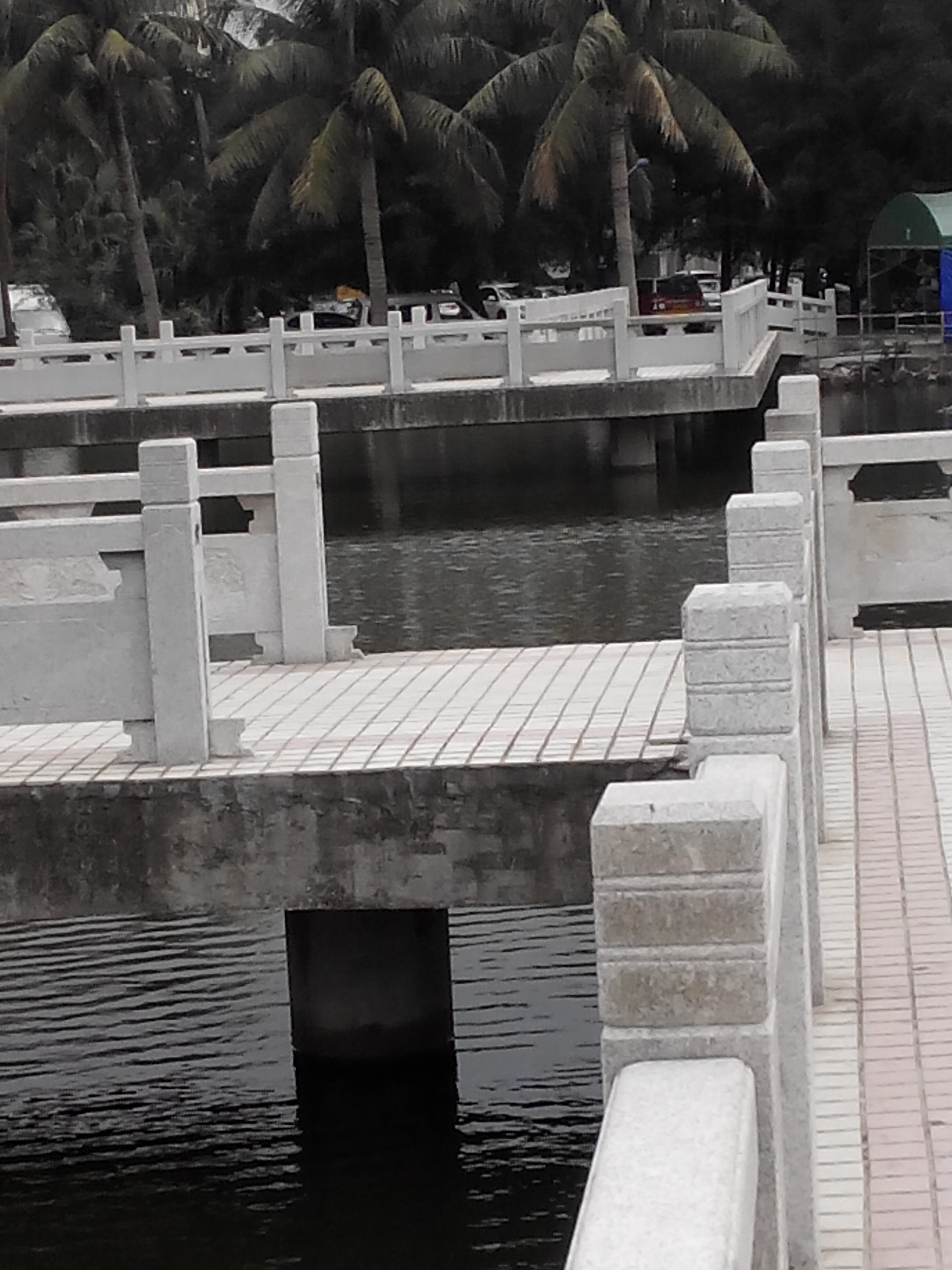 五一假期,忍痛把一托乌龟卖了,换了几千块钱,叫齐同村三姑六婆,叔侄婶嫂,包了两台面包车,浩浩荡荡从沙琅赶往繁荣富强的水东旅游。 一路上经过七七四十九座危桥,终于到达水东。 先到西湖九曲桥玩,以前潘书记在任时,这里刚刚做好,湖水清澈,桥面洁白,好像天安门前的金水桥和杭州西湖的结合体,我还在这里照相留念,犹如在画里游玩。 几年过去,这里好像经历八国联军侵华,到处残岩断壁,尿迹斑斑,危险肮脏。我们几个大人都要拉住小孩的手,防止他们掉下去喂鱼。
