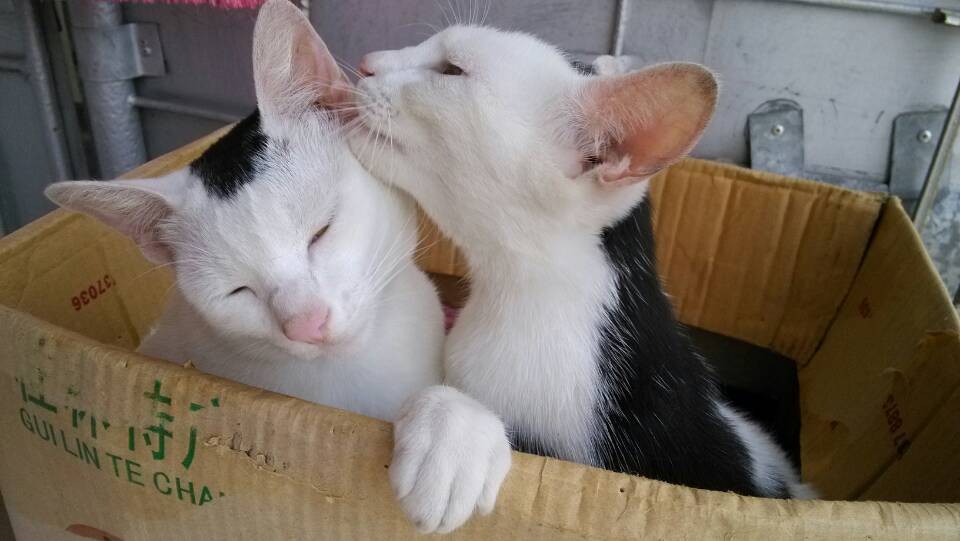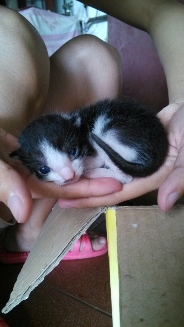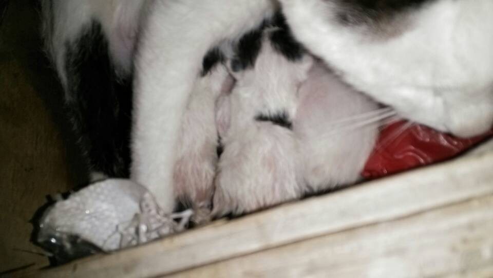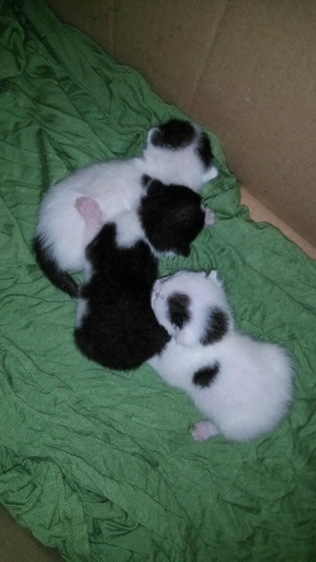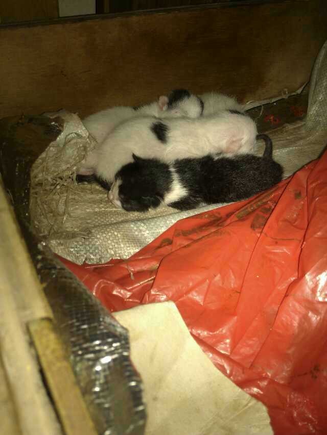 2014,05,03下午,自己养的猫生产了4只猫崽哦,都是黑白色的,现为小宝贝们寻找有爱心的主人,