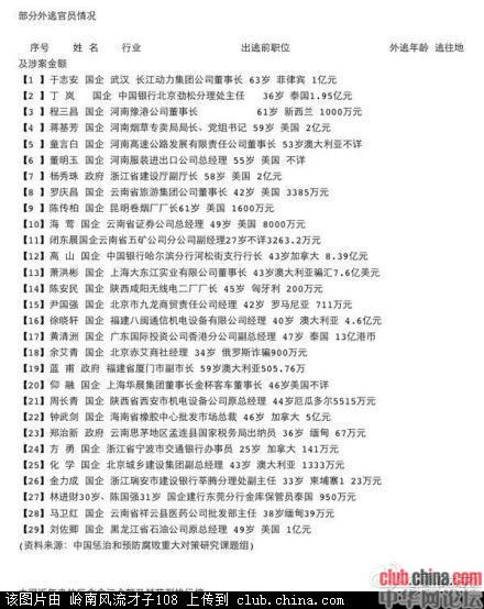 以下是《广州日报》整理的部分名单外逃贪官名单。