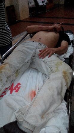 “弟弟脑震荡,我左脚被打成骨折,并验有血尿,无法行路,一天就5000多医疗费,交不起钱医生停了药,派出所也]作处理”