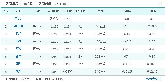 [attachmentid=329186] 这是厦深动车组的票价,在广东省内按不到0.3元每公里。 [attachmentid=329187] 这是广州南到深圳北高铁组票价,在广东省内按0.73元每公里。 深茂铁路动车组,在广东省内应该按0.3元每公里收费,正负0.1元浮动。 深圳到茂名东站按450公里算(具体由铁路局公布实际里程),估计票价为135元~180元。 深圳到观珠估计票价为:120元~160元。 告别TMD沙琅~深圳120元的高价汽车票,时间缩短为3小时左右。