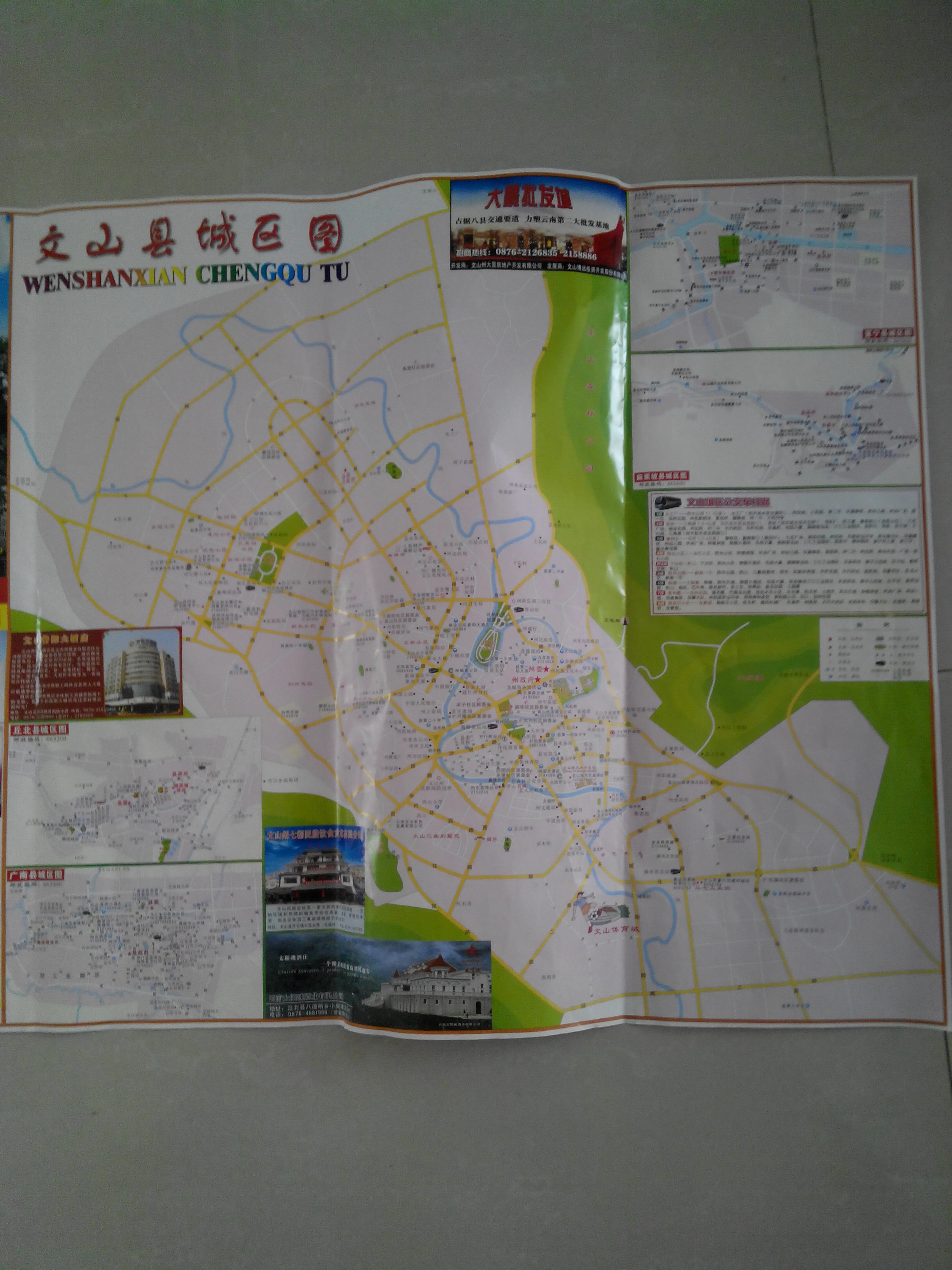 [attachmentid=330390] 文山州地图。 我去每个城市玩,都会以最快的速度买一张当地地图,以清晰了解自己所处的方位,和地方布局,景点详情,更有效的制定旅行计划。 至今已收集了二三十张地图。