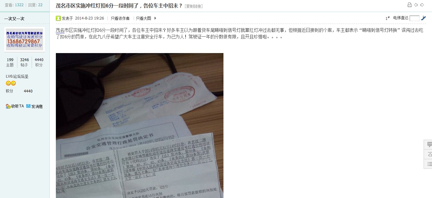 茂名市区实施冲红灯扣6分一段时间了,好多车主以为跟着货车尾看不到信号灯就算红灯冲过去都无事,但根据近日接到的个案,车主都表示“看不到信号灯转换”误闯过去扣6分的罚单,驾驶证一年的分数很有限,大家要珍惜啦。。。