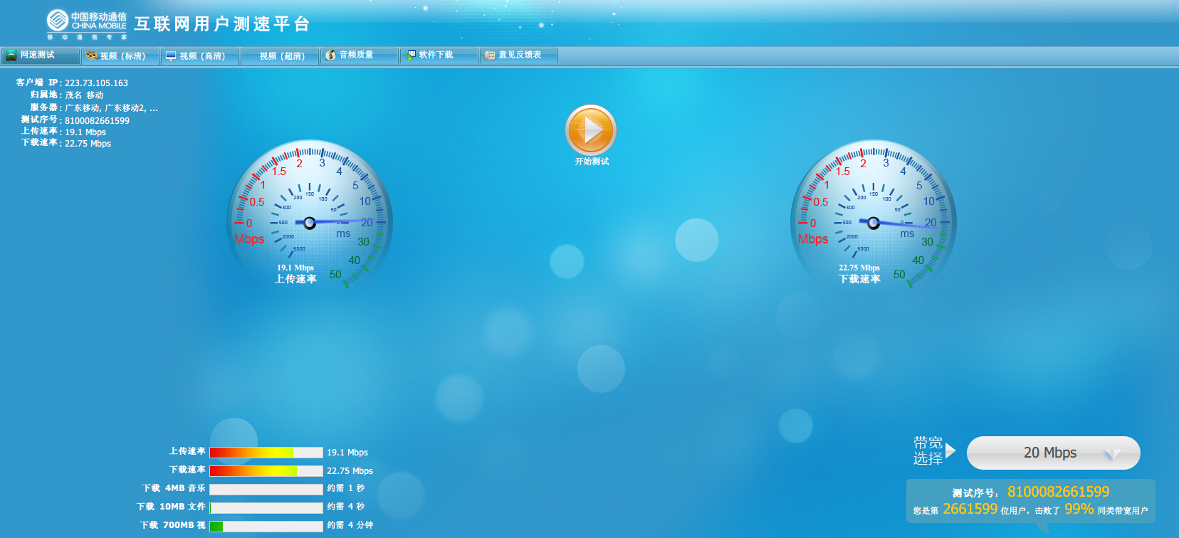 中国移动官方指定测速站点和测速工具。