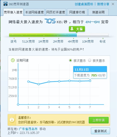 QUOTE(花间梦 @ 2014年11月11日 Tuesday, 12:10 AM) 续费6M 450元办了很后悔不办12M的,有些网站打开慢,但下载还稳定。 [snapback]3714765[/snapback] 网速当然是越多越快这是必然的。别伤心,来年续费提速就行了。