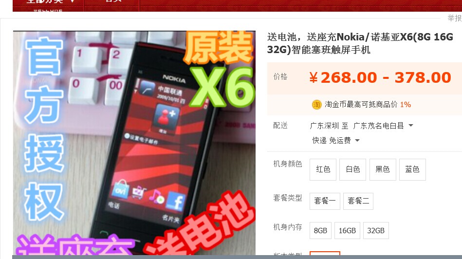 前几天在TB上购买的,一切正常使用,因看中了富可视M310这款骚亮的手机,忍心割爱,机子一切正常使用,买回来时是2个电池,一个直冲,买回来之后疼爱有加,又购买了一个后盖保护壳,当时买回来的价格是¥280元,现¥198元出,机子9.999成新,具体图片参数如下,看上喜欢的朋友可以电话给我。