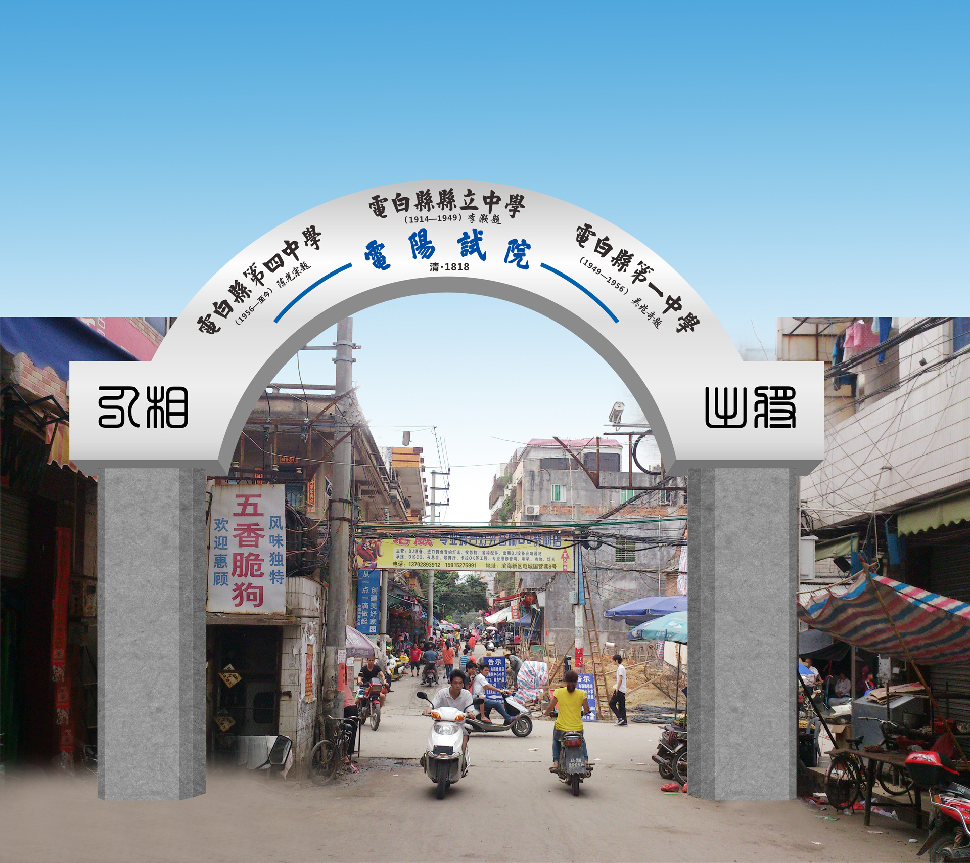 QUOTE(四中乐叔 @ 2014年11月13日 Thursday, 12:09 AM) 把“电阳试院”、“电白县县立中学”、“电白县第一中学”、“电白县第四中学”都客观表述 在电城东街中学巷口的拱门牌坊。 [snapback]3715162[/snapback]