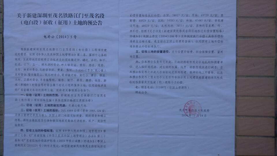 深茂高铁征地公告