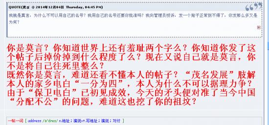 QUOTE(湖海山人 @ 2014年12月04日 Thursday, 09:06 PM) 我没孔婆的气量. 本来我计划在十周年后湖海山人这个ID就淡出论坛的。 [snapback]3720004[/snapback] 本人倒想诺贝尔文学奖得主“莫言”先生不要淡出论坛,在淡出论坛之前,起码也要说清楚怎么得了大奖,又怎么沦落到这个论坛当起了枪手。