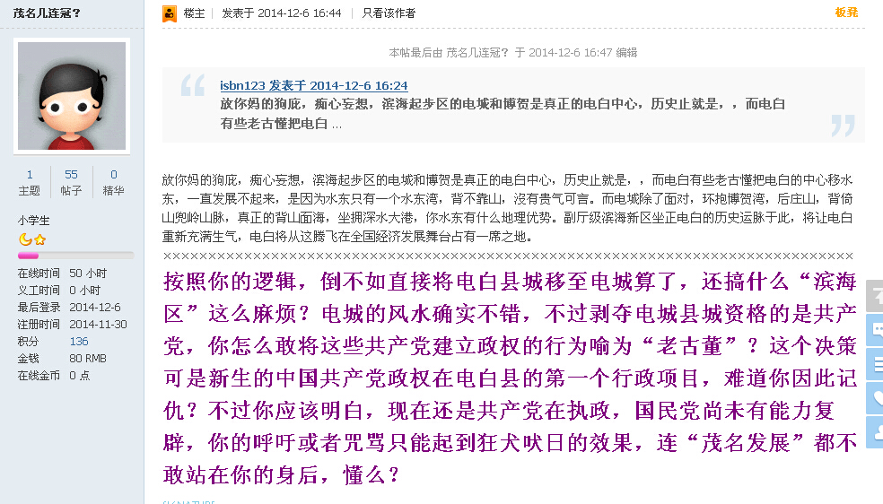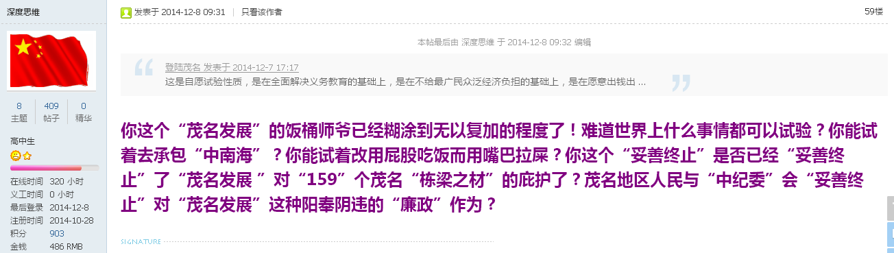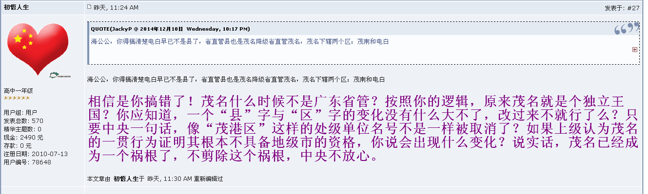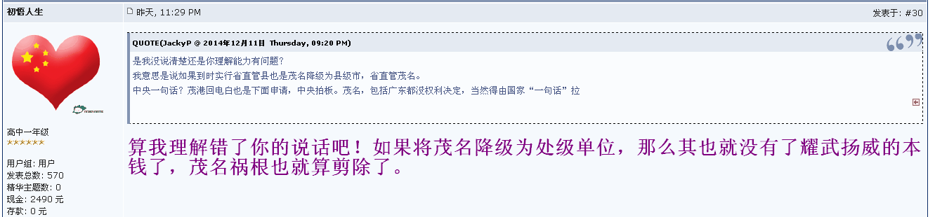 来自茂名论坛的争论!