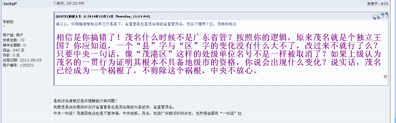 (来自茂名论坛的争论,下面是“茂名发展”的师爷的言论)