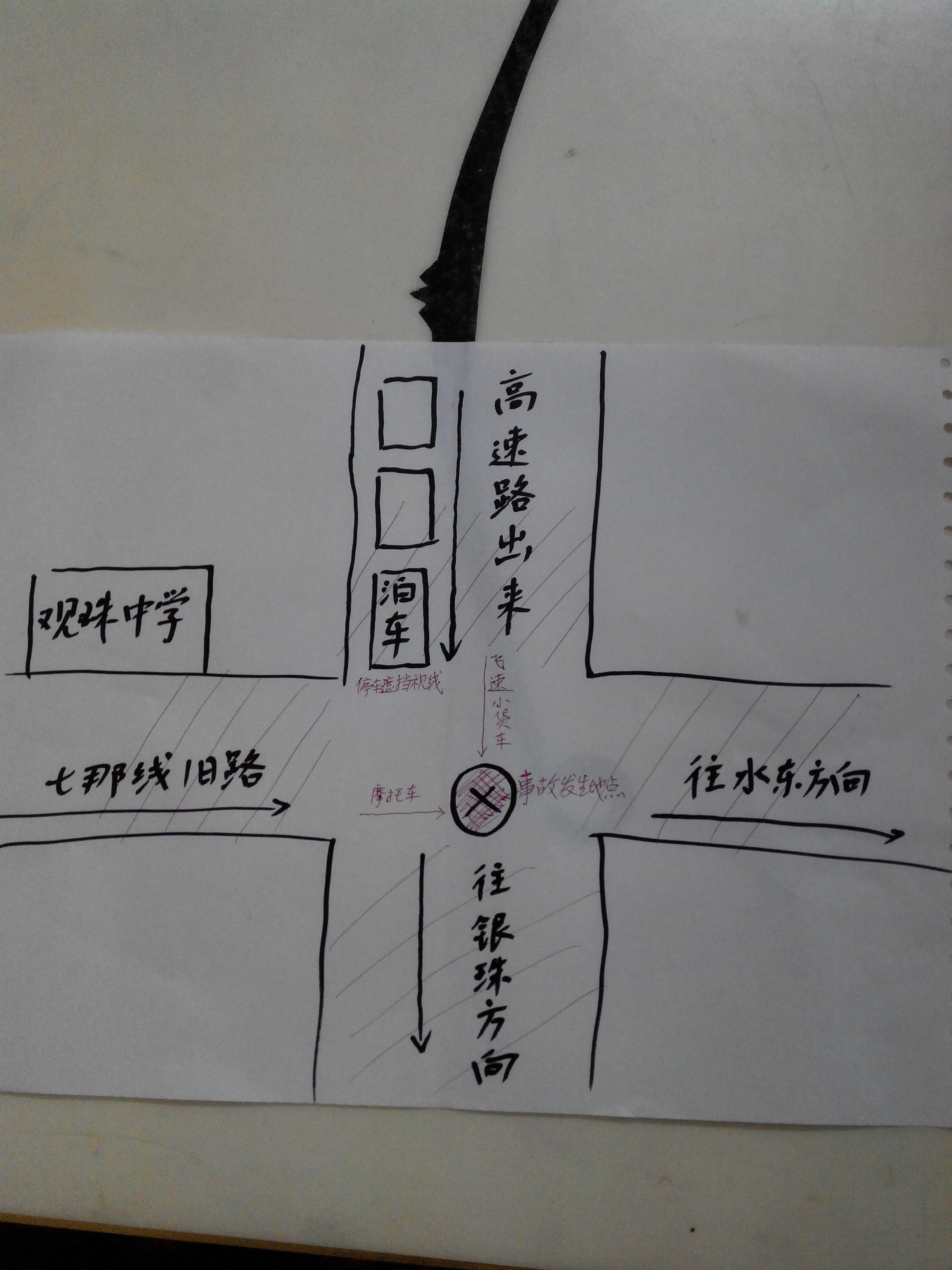涯系观珠人 博士后 注册 2014-07-03 消息 1,508 反馈评分 188 点数 101 2014-12-27 #16 [attachmentid=336094] 事故过程示意图。 一是停车遮挡了视线,二是直路开来的小货车速度太快,到路口也没减速。 如果有减速带可以避免或者减轻事故严重程度。 附件 IMG_20141227_184223.jpg 1 MB · 查看: 331