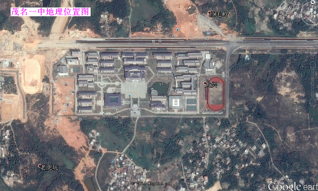 “茂名一中”不仅选址存在致命的错误,而且取向也跟一般风水师一样犯了不可饶恕的错误DD其竟然取“暗镜岭”“为案”(文字上地理名词用“晏镜岭”,黎话叫“暗镜岭”)!许多的风水师认为,上吉的风水宝地必须有“案山”,如此方可出贵人(理由是,当官必须有案台)。且不论这个“案山”是否真的存在富贵与否的能耐,仅就距离来说,你能使用远在天边的“案山”么?显然,“茂名一中”取“暗镜岭”作为“案山”是不可取的,因为其距离“暗镜岭”尚有很远的路程(如下图)。就算“案山”代表能出达官贵人,难道什么“案山”都一样?为什么“愚公移山”中的王屋山与太行山没有成就“愚公”一家的富贵腾达而使得愚公一家不得不“每天掘山不止”?显然,“案山”之说又是传统风水论的谬误所在矣!不管阴宅阳宅,对面出现高山阻挡,这都不是什么好事,尤其是阳宅。如果你不明白其中的道理,不妨参考一下BJ故宫的选址与选向DD“中轴线”之南可有高山“为案”?可见,“取山为案”是风水师的谬误之选。此外,“茂名一中”面对的“案山”是什么山?那叫做“暗镜岭”?从玄道来说,“暗镜”是什么东西?其跟“暗箭”没有多少的差异。如果哪个人房子被“暗箭”所射,其未来家境就可想而知了。因此,“暗箭”射来,你说“茂名一中”会有好果子吃?