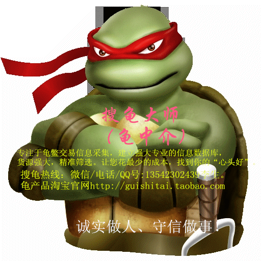 [attachmentid=336085] ①买龟/卖龟 请找搜龟大师(中介) 专注龟鳖交易信息采集,强大的数据库,精准筛选,让供求双方快速对接。 ②购销:金钱龟/黑颈/安南/黄缘/石金钱/白化)。兼营龟产品:龟食台 /龟粮 /虾皮 /龟药。淘宝http://guishitai.Taobao.com搜龟热线(微信/Q)13542302439