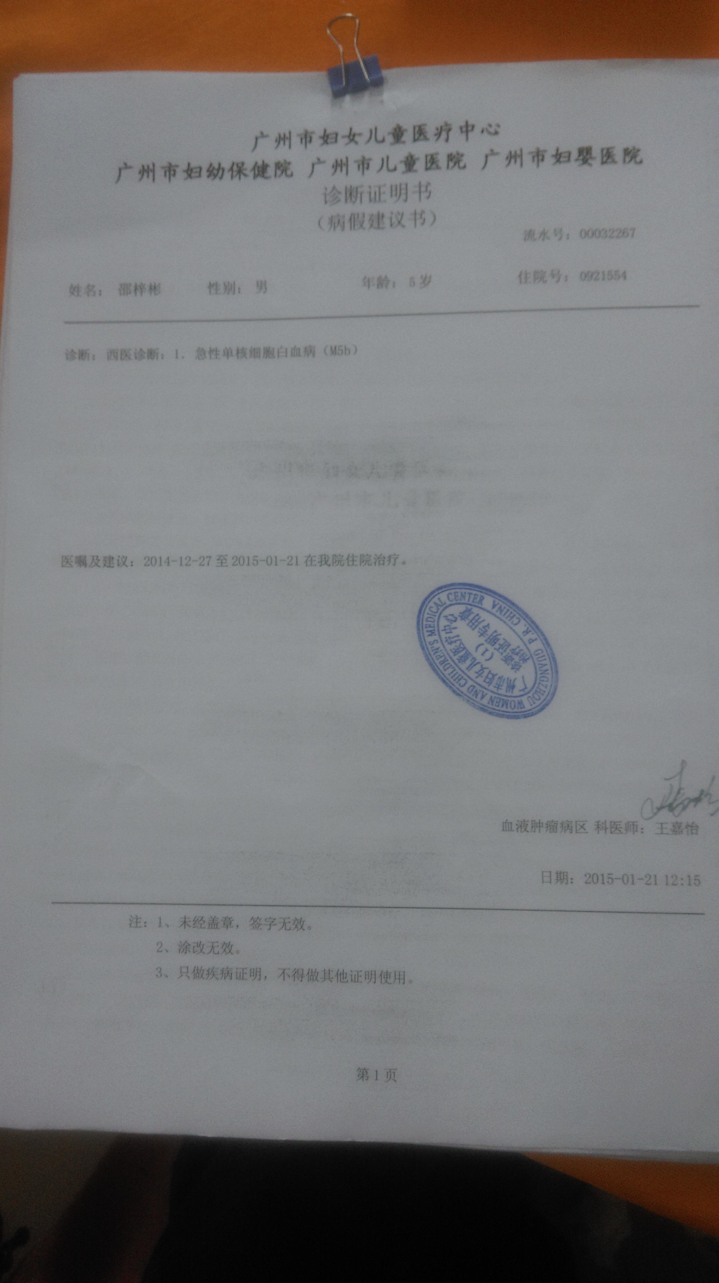 救救白血病小男孩求助书
