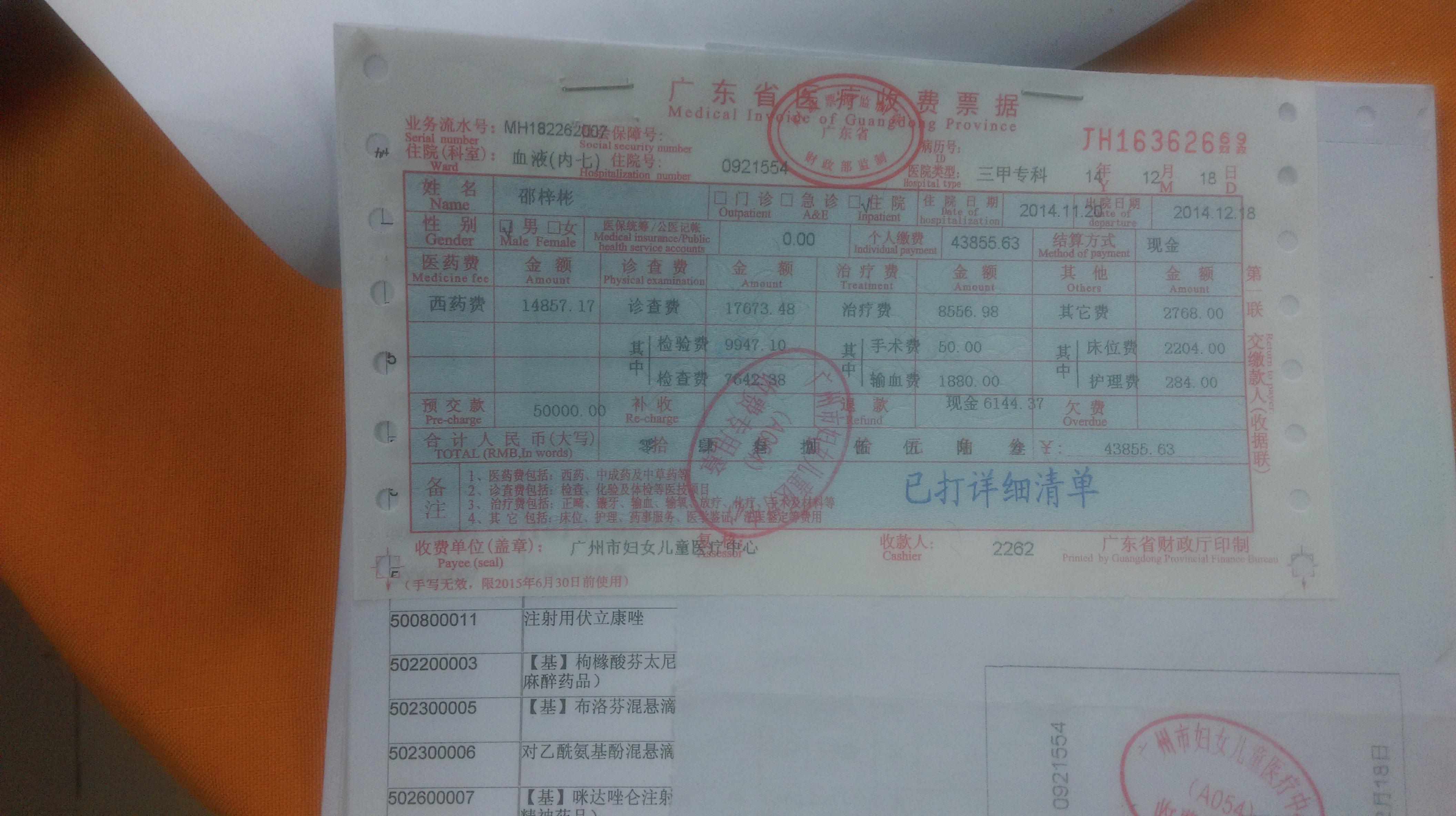 月27日到2015年1月21日已经化疗2个疗程,花去7万多(其中在茂名人民医院花去2万