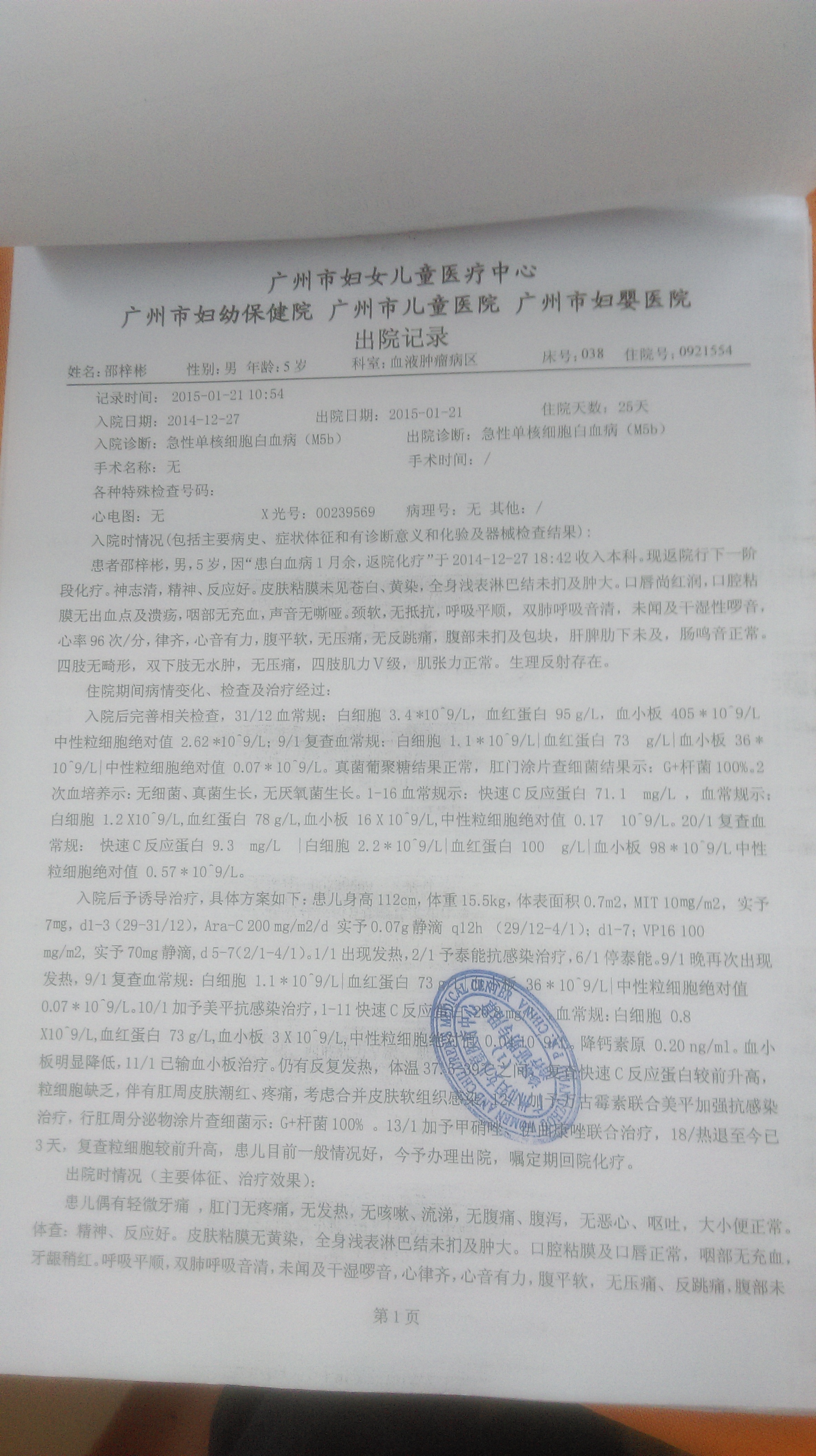 QUOTE(电白妹子201314 @ 2015年01月30日 Friday, 08:40 PM) 具体说说这个案例,这个病是点样发生的确,他家族有人有这个病吗,还是他们生活在污染很严重的地方, 他们的生活习惯又是点样的, 打电话给珠江台的《今日关注》啦 或者《今日最新闻》 [snapback]3732565[/snapback] 小朋友发高烧不退,走路无力,脚腿酸痛等就要注意去检查, 他家族应该没有这种病,生活习惯就是他父亲吸烟毕竟厉害, 污染环境好难讲,随着经济发展,你懂的! 打过电话给新闻媒体说要排队啊!! 所在的医院收治有一百多这样的小朋友啊!!!! 太可怕!!!!!!!