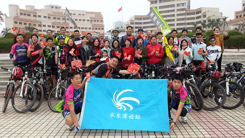 2015美利达自行车首骑贺新年活动圆满结束。水东湾论坛和美利达自行车骑友欢聚在区府前,大伙握个手,祝个福,道声新年好,比短信和微信来得更爽。合影后骑行一滩,然后在晏镜岭下白灼海虾和虾菇。希望在新的一年里继续发扬骑行精神