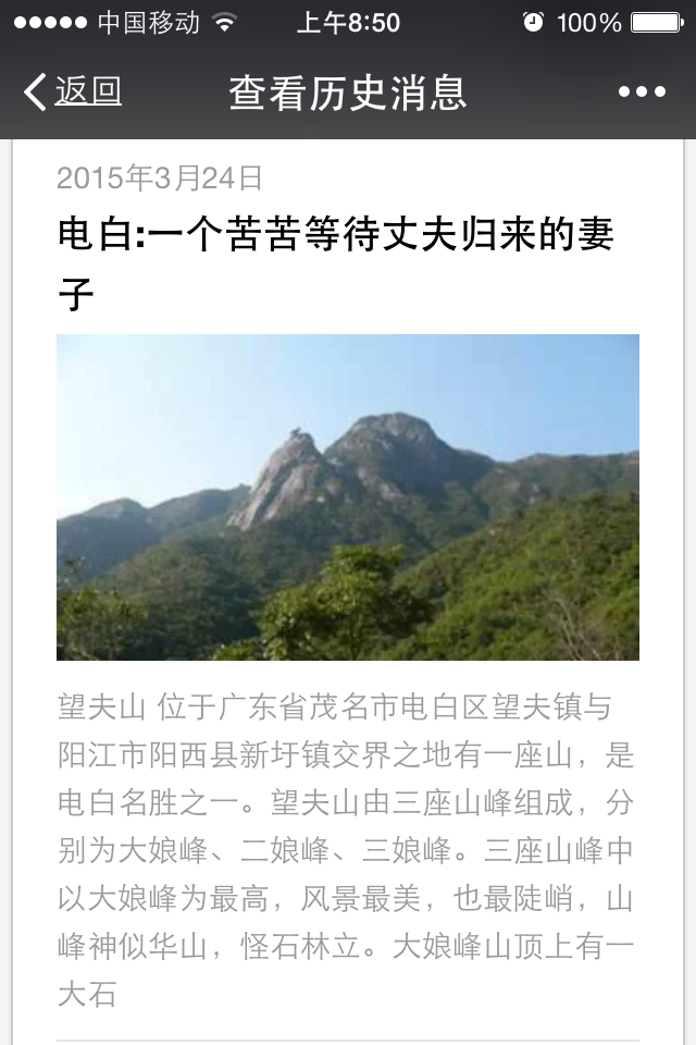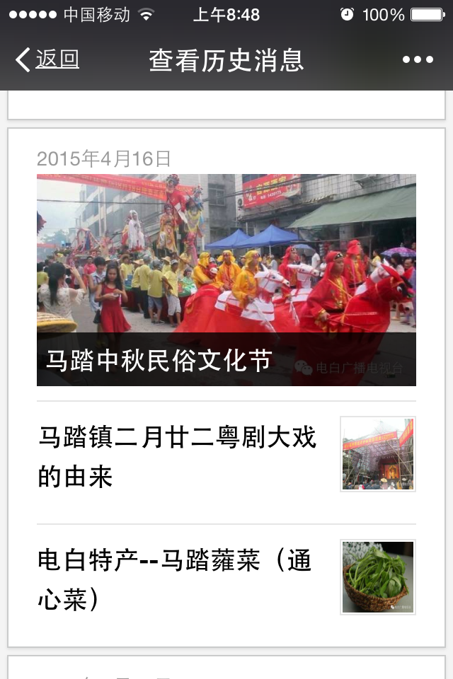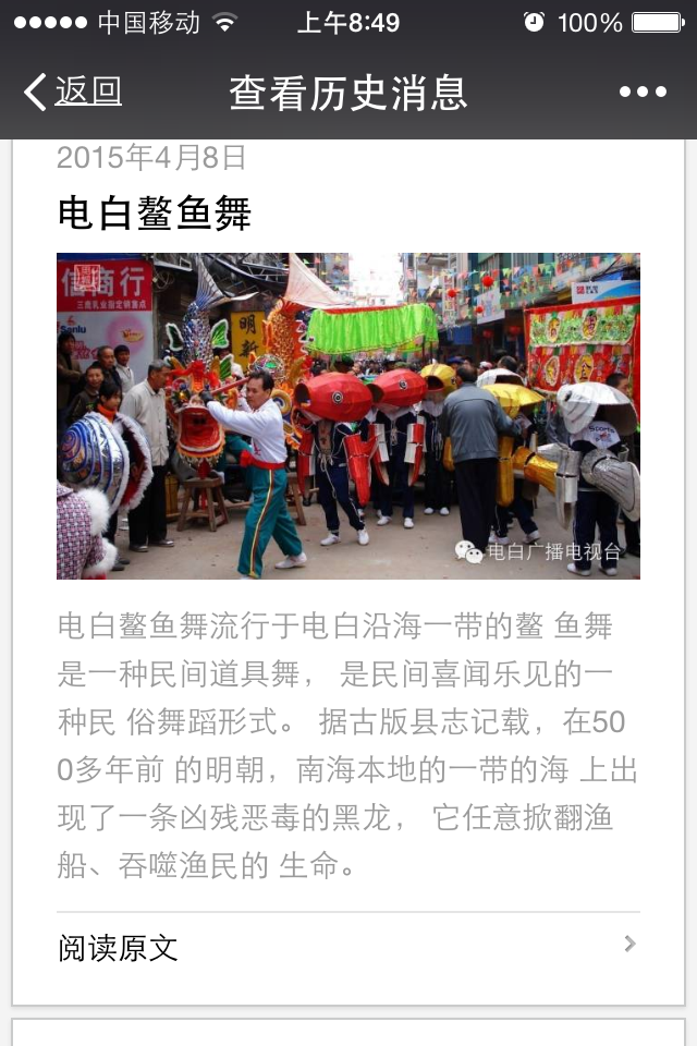 “电白广播电视台”微信公众平台已经安家了,在此做个小广告,各限功能正在开发,陆续完善中!欢迎您“常过来看看”,多多交流喔。我们可以一起把公众平台变成共同的家园,像家一样温暖的地方 。电白人都有一个共同的梦想,那就是“实现伟大中国梦,建设美丽富饶文明和谐新电白”!弘扬家乡冼太夫人文化,以“爱国爱民”精神传承不息, “唯用一好心” 挖掘家乡的风土人情,山河湖海,特色饮食,和悠久的历史人文,把家乡新鲜有趣美好等正能量事物与您一起分享,也希望您能够记住“ 关注”我们的微信公众平喔,像家一样经常回家来看看――――您也可以把“它”介绍推荐给远在他乡工作的家乡父老乡亲们,也可以把内容分享到您的朋友圈,告诉您的朋友们,我们的家乡是充满青春活力,勃勃生机!电白人民是文明的,和谐的,热情的,好客的。拿起你的手机打开微信,扫一扫,加入关注。谢谢各位