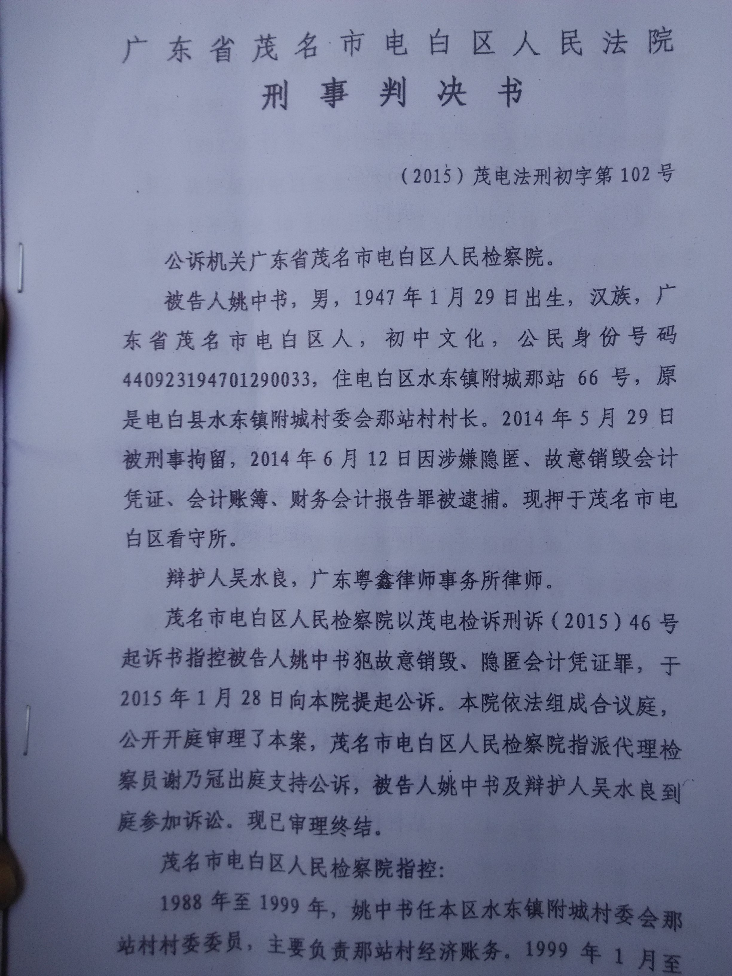 那站村那些年的事,终于有一小部分尘埃落定,姚某某应得到下场。