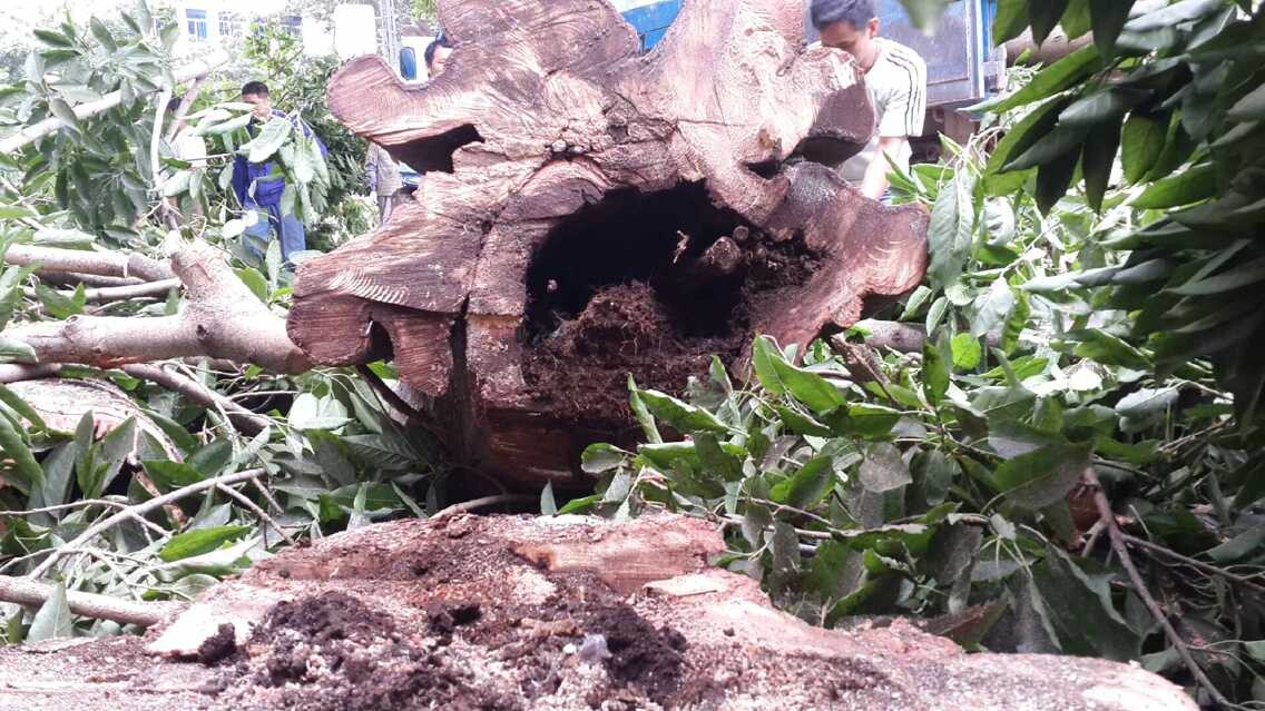 能理智点么?一是为了安全,安全隐患能少则少,二是树太大了,那树根都把底下的瓷砖撑起搞得支离破碎坑坑洼洼了,三是商户或住户也有这个诉求,这么一大棵树堵着门口。