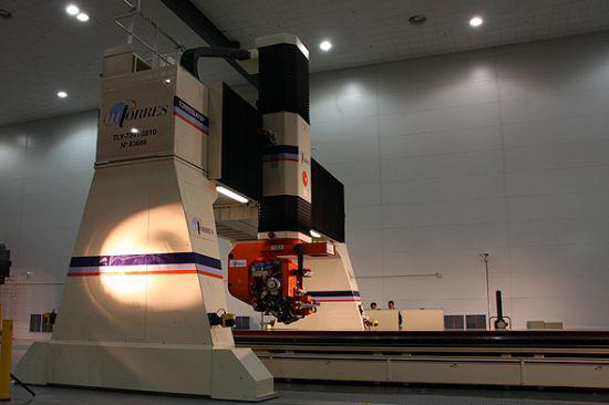 图为中航哈飞空客复合材料制造中心新厂房内配备的自动铺带和切割一体机,也是中国首台自动铺带和切割一体机