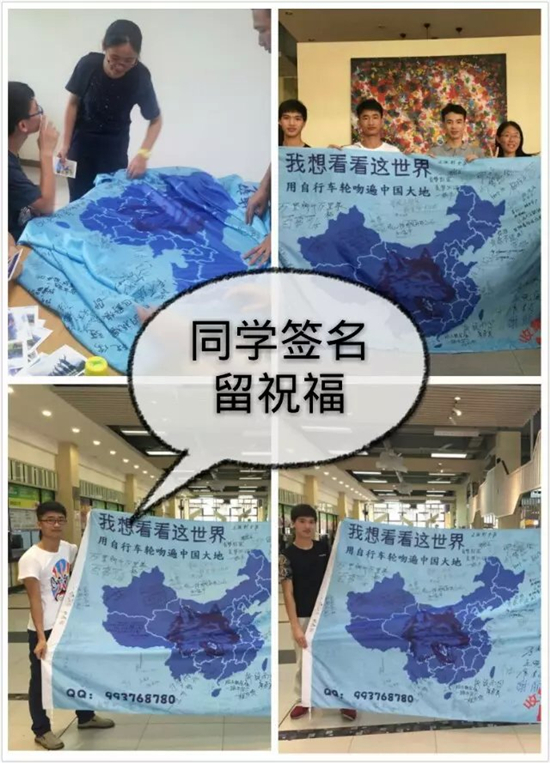 单车中国,第三次试骑,也是最后一次试骑!一路经过同学朋友的家,收集他们的签名和祝福。“一路平安”是你们最大的祝福,但我更喜欢的祝福是“我们相信你会平安归来”。很喜欢阿毛送的那句话“有些人的梦想是说说而已,而你不一样,兄弟,祝福你”…你们的祝福,我会带着它走遍中国,当我在路上孤独,无助,迷茫时,带给我动力的就是你们的祝福! 离高考还有37天,我会把握住最后的时间,还是那句话,只待六月,金榜题名,辉煌上路!单车中国,6.11起航