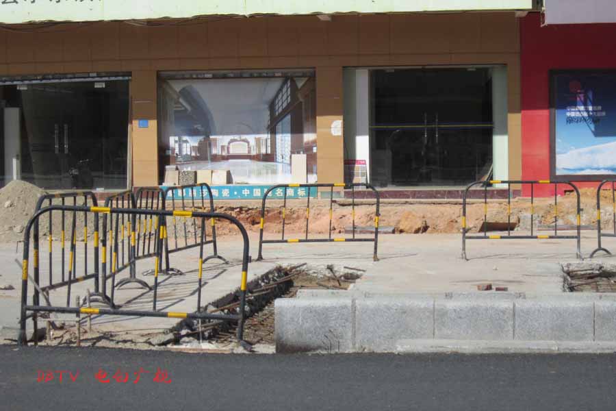 西湖路已经填平第一层混凝土层,但是路面没有设置栏杆,晚上行车会有安全隐患。