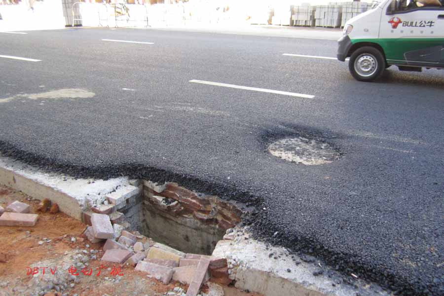 很多地方沥青路面真的不平,可能是赶工所致