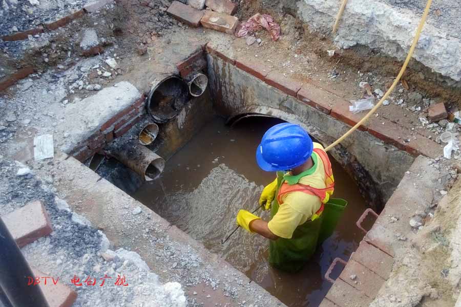 在一些排污管道口,小编看到有工人在清淤,电路管道口,有工人在拉电缆。