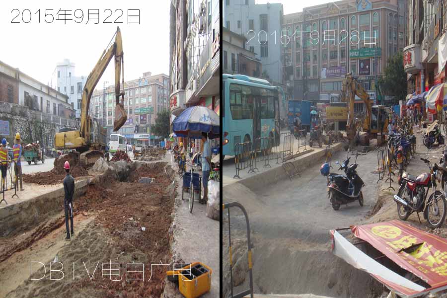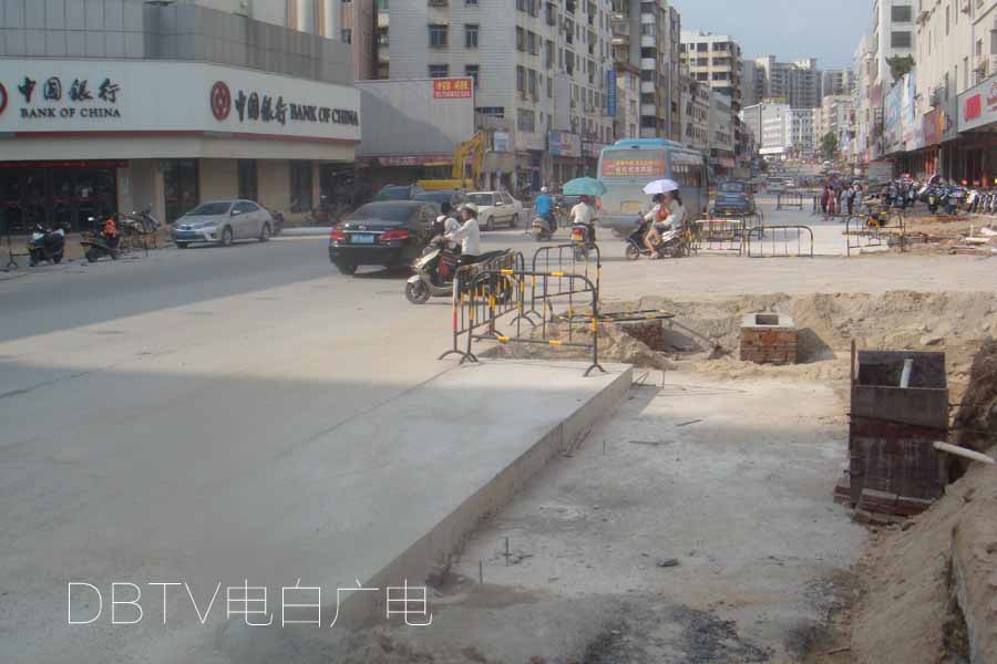 小编在人民路看到,由于临近中秋佳节,为方便广大市民回家乡过节,施工单位已经疏通路口和路面,清理堆泥和材料,在为完成的路面、坑洼处设置醒目安全标志,原来受雨水冲蚀的烂路填平。除了个别路段正在紧张施工,其余基本行车通畅。