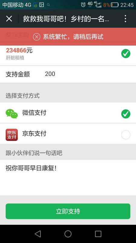 要是全县的教育系统及其它系统都加入来捐款,肯定很快凑够的。
