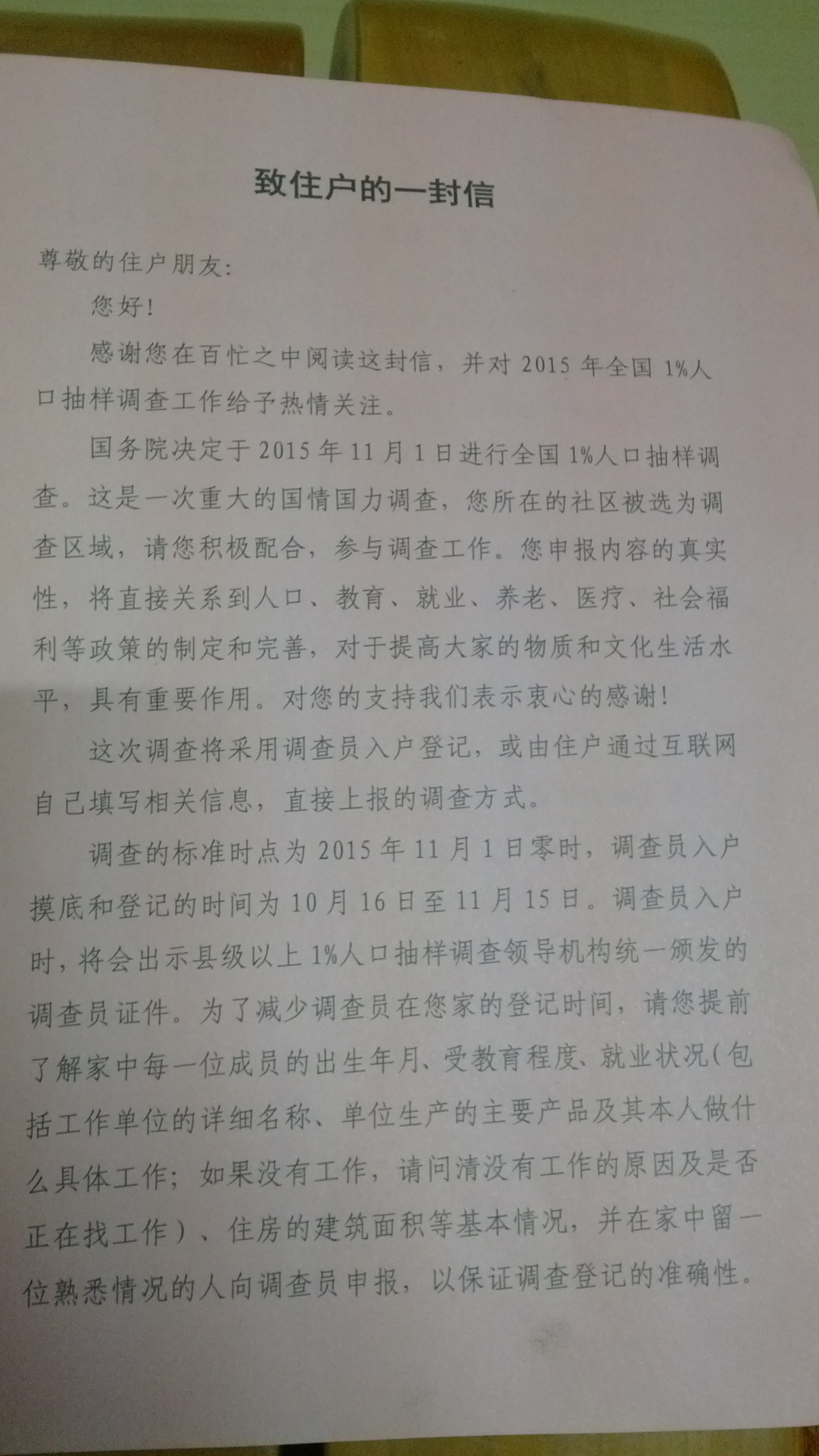 第二个是人口普查・我在家收了一封信,就是关于人口普查的・记得都是十年一次・不知道这个是不是真的?会不会是 生佬 发来 漏粒 我们的呢?看看在政府的哥们能告诉一声・・