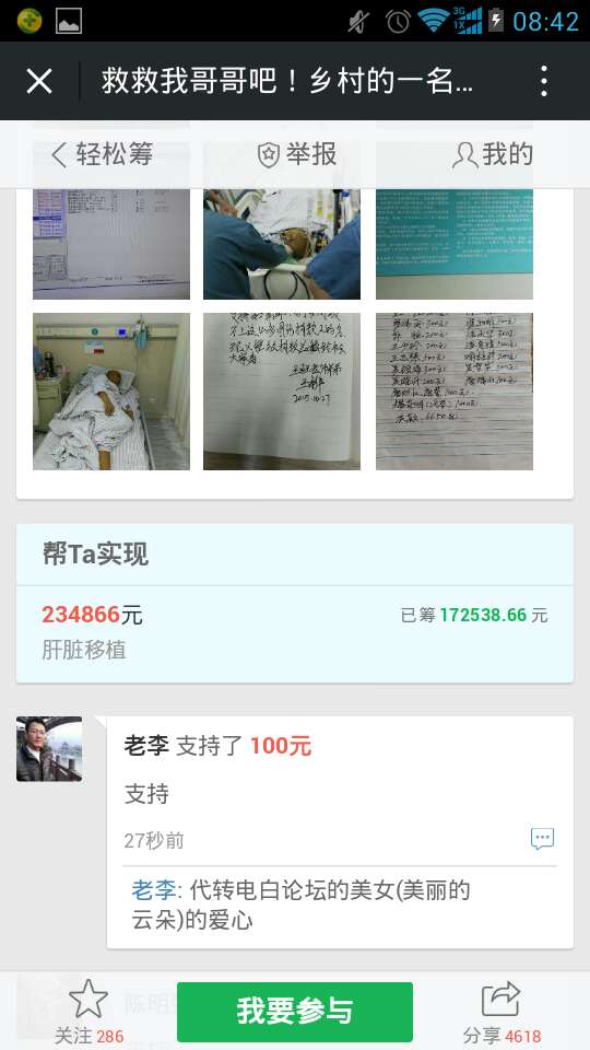 一 一点云 小学三年级 注册 2006-10-21 消息 222 反馈评分 5 点数 1 2015-10-29 #1 【捷报再传】天佑好人,王旺老师肝移植手术非常成功,现只需等待明天检查是否有感染和排斥,让我们双手合十,一起为他祈祷, 感恩所有的你,愿好人一生平安!