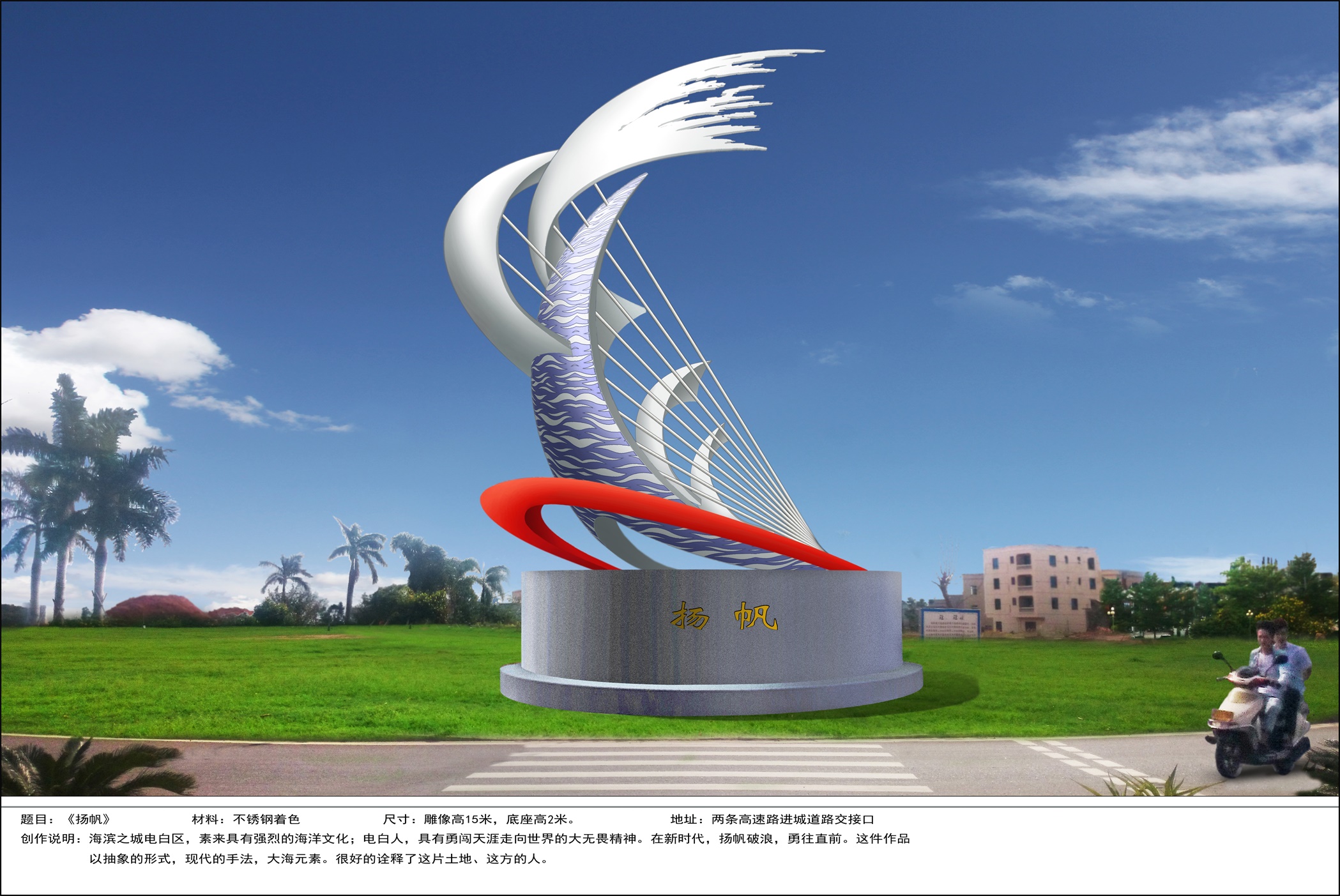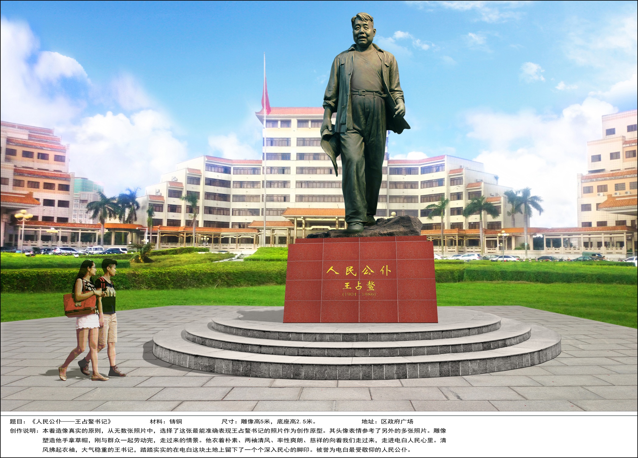 【关于城雕建设征求意见的公告】为提高电白城区质量和文化品位,区委区政府拟于电白区委办公楼前草坪建设一座“王占鳌”雕像、在那楼大转盘建设一座“冼夫人”雕像、在紧靠包茂大道与迎宾大道北十字路口东南边建设一座“扬帆”雕像。经某文化传播公司初步设计出以上3个雕像的总体效果图(附后)。现公开征求社会对城雕的选址、主题、图案设计优缺点等方面的意见,请广大群众(网友)灌水、拍砖。【电白区委宣传部】