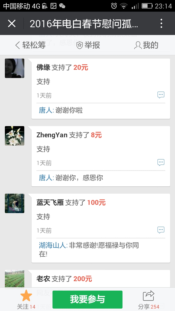 轻松筹支持了200,请查收,谢谢