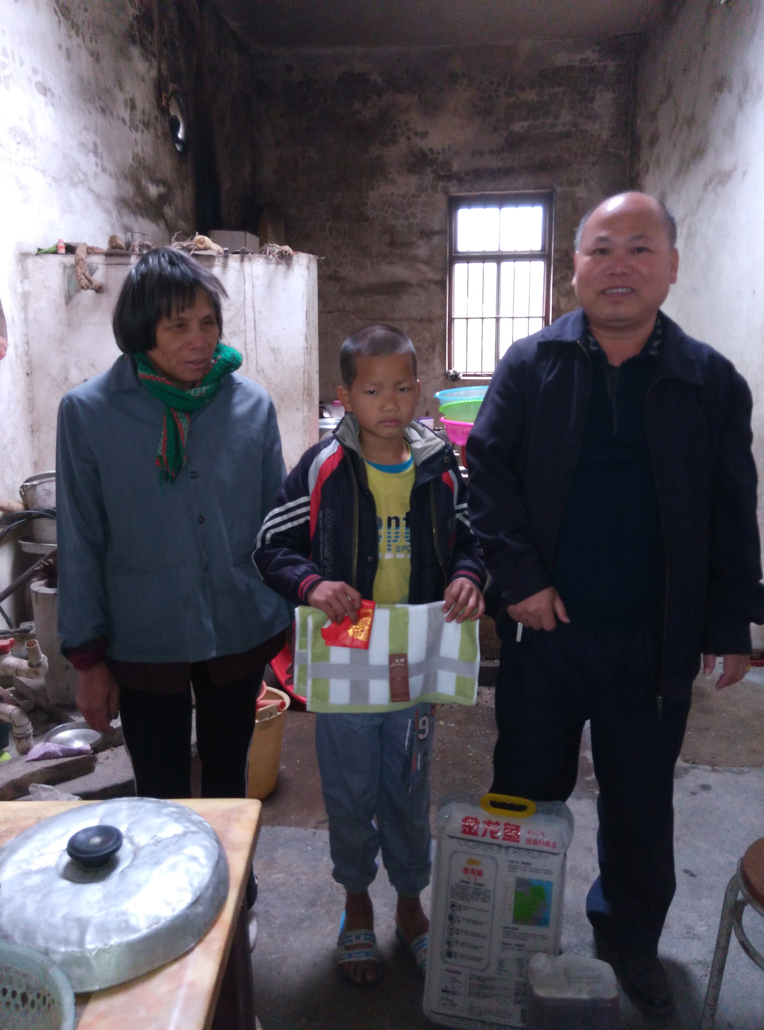 探访望夫民乐了塘村自强儿童李福喜,左为他婶.右为我们的队友