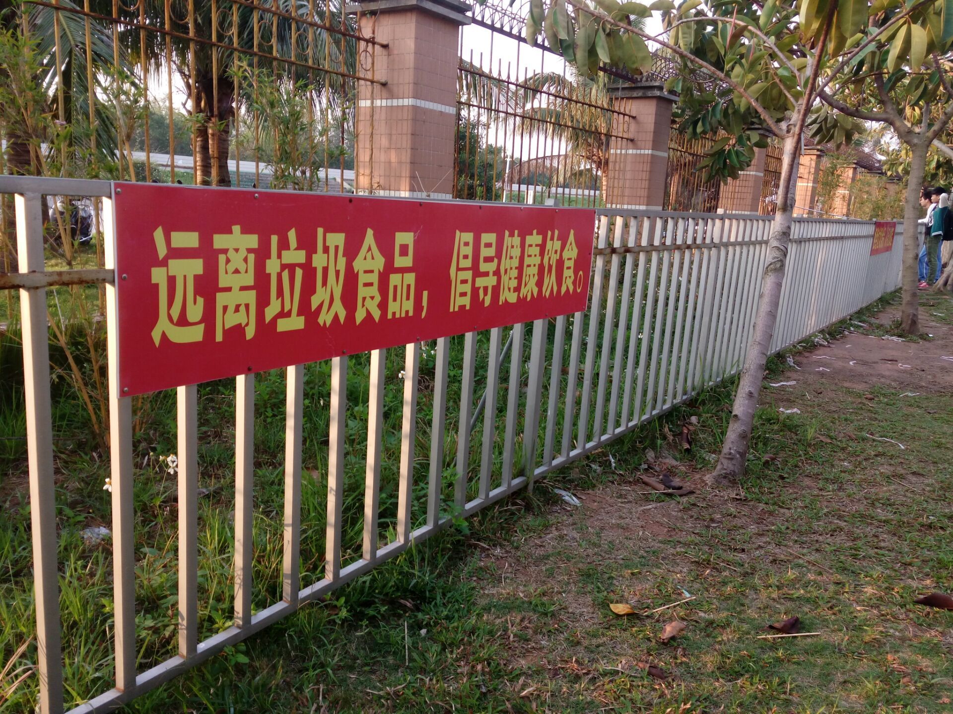 3、学校除了教育学生不去买无牌无证食品外,还在安排领导干部在特定时间去阻挡到围墙买食品的学生,但都只是一时起效。而学校不是执法单位,又不能对围墙周围的摊贩执法,所以只能做好自己,在学校围墙建起了隔离栏,起到了一定的效果,已比以前好了很多,学校也一直在努力杜绝这方面现象,也请相关部门介入,严厉打击无牌无证的摊贩。
