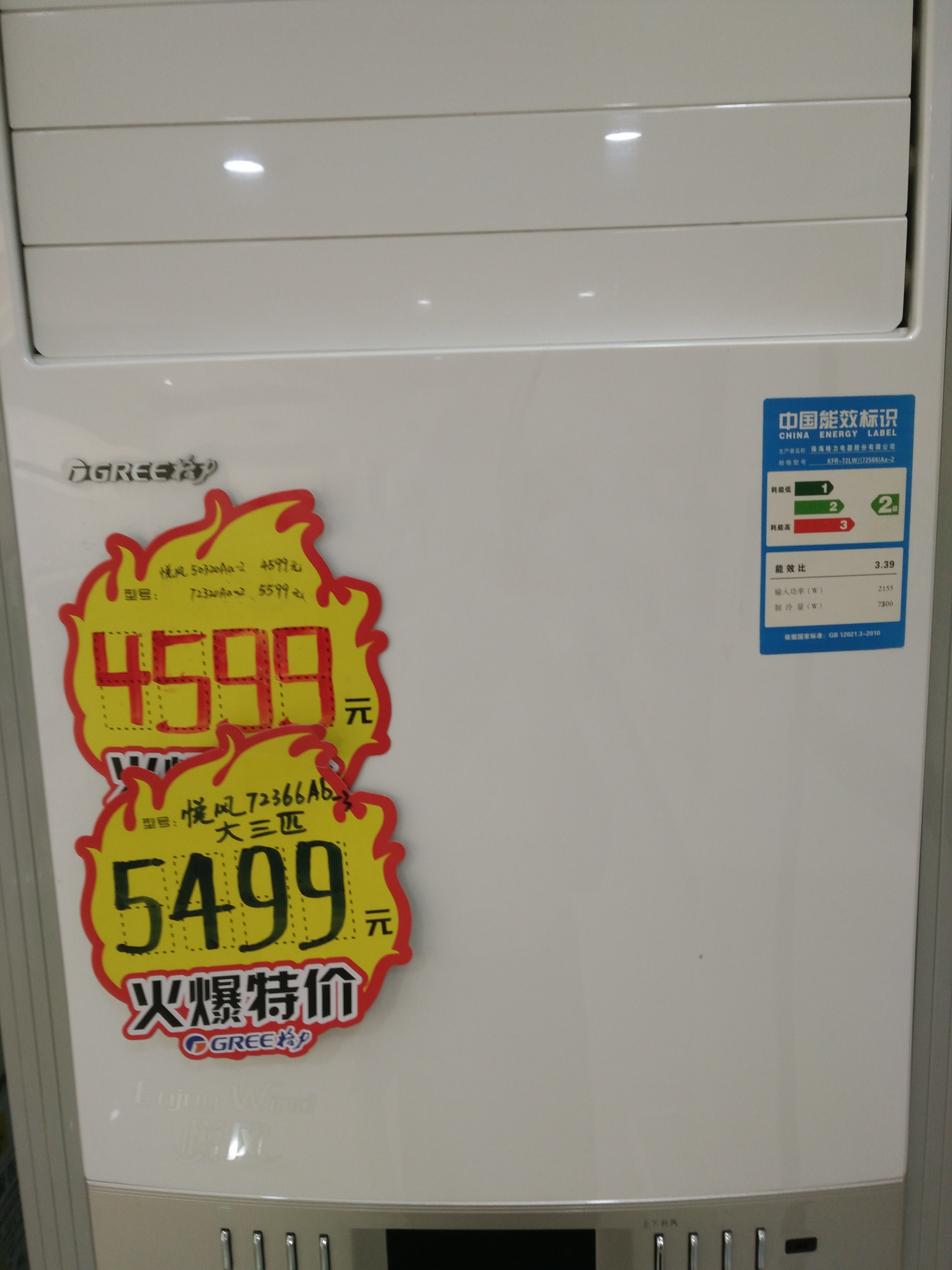 一点了,还是睡不着!心里还是闷闷不乐,因为感觉受骗了!今天,由于新铺需要一台空调,就看了很多,后来想买格力,我看到人民路的格力空调感觉挺有实力的样子就进入瞧了,经员工介绍看中他店的空调3匹打着5499.我知道海滨悦风这款机子要5599,以为便宜100没多想就拿了!下午送过来了,和装空调师傅研究怎么装,结果装一半的时候才发现他送过来的空调居然跟我看的是不一样的,我看的是2级能效,结果给我送的是3级能效!我生气了,打电话给他,他说2级能效没货了,所以就送了3级