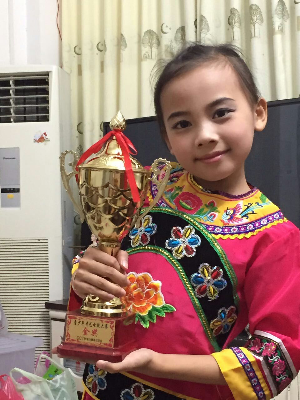 别看谭沣鹂年龄小,小小年纪的她早已是舞台上的常客,唱歌、跳舞、演讲样样不在话下,各种各样的荣誉证书及奖杯见证了这个小女孩心中闪亮的音乐梦想。至目前止,她已经15次在中央和省、市级比赛比赛中夺得冠军了!前不久,她又站到了中央电视台《音乐快递》演播大厅的舞台上,而且以最高的评价获得了梦想杯,不用多久,大家就能在央视一睹她的丰采了!