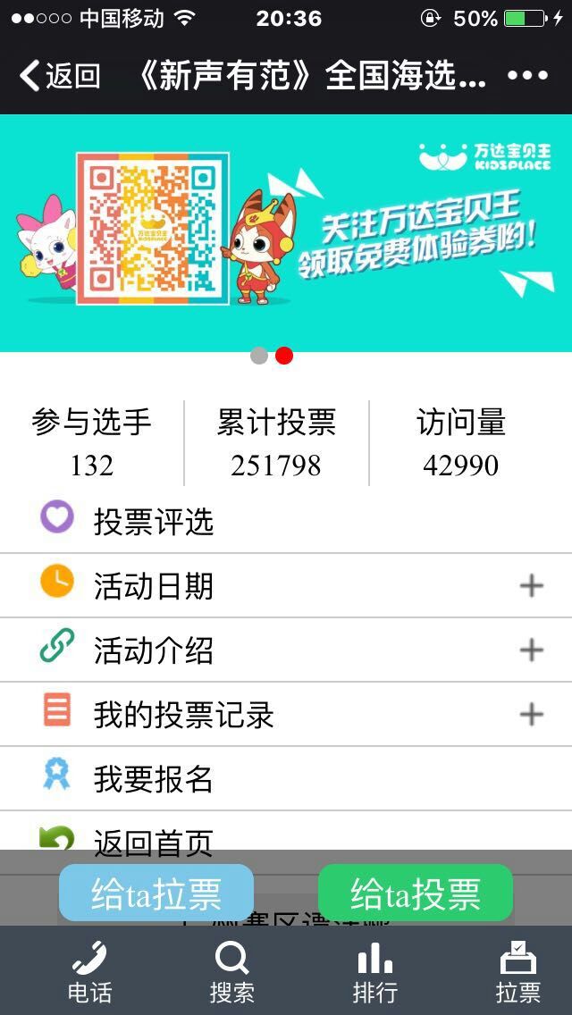 现在要进行人气投票了,决出全国人气前3的可直通电视节目录制!