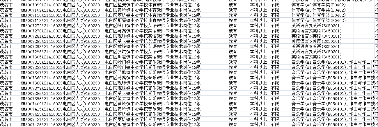 教师招聘遮遮掩掩,从来不敢公开,茂名的其他地方都发招聘公告了,电白的还没有踪影。信宜化州高州还招很多本地的大专生,电白的却连本科生都不要,电白真是人才济济呀??大学毕业生找不到工作,谁还愿意读书?