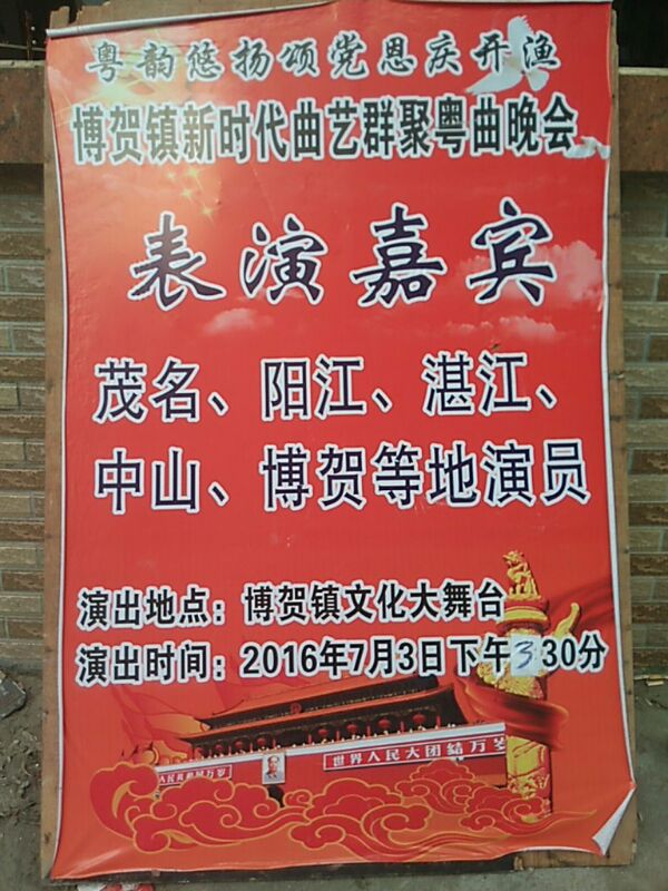 由博贺港曲艺交流微信群组织的曲艺汇演将于明天下午3点至晚上11点在博贺文化中心(博美)举行。 届时将由国家级著名高胡演奏家吴国平先生领衔担纲,阳江市区、阳西、茂名等地的曲艺精英云集一堂,活动规模庞大,阵容鼎盛,精彩纷呈。组织者表示欢迎同好参与共乐。