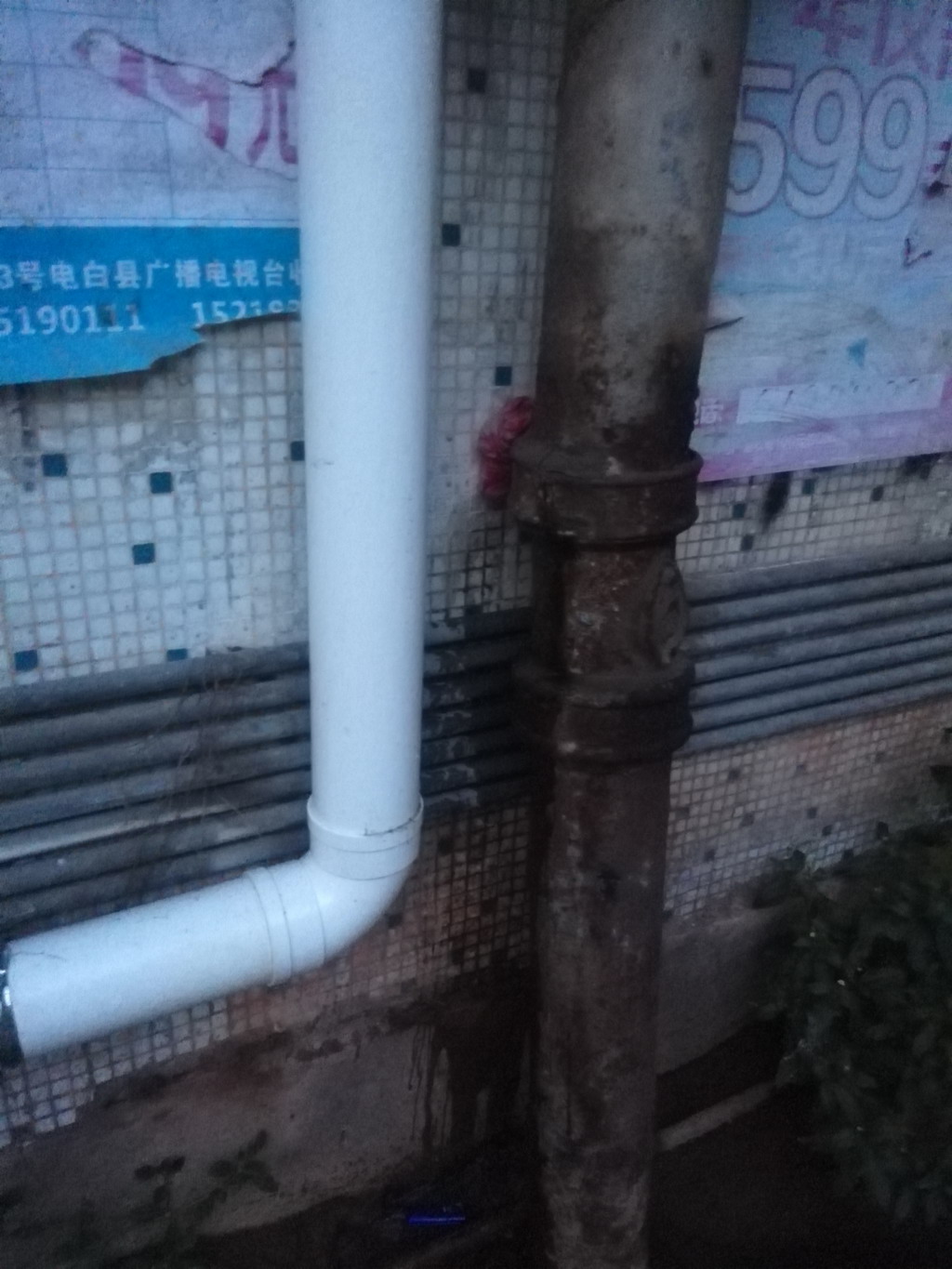 水东镇新湖一路的中国银行宿舍楼原排污管是用铁管,早已破损,污水横流、几经相邻住户反映,前十多天更换了二根排污管,好了有二天,因还有一根排污管破损不换,且可能化粪池堵塞,近几日污水横流更甚,恶臭难闻,苦了相邻住户及过路的群众。