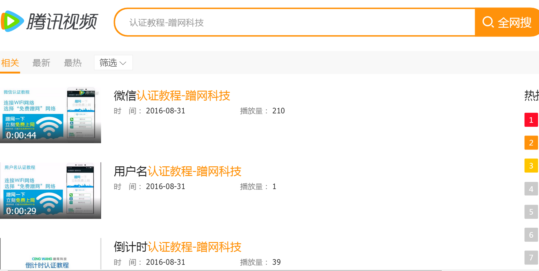 或 (腾讯视频)上搜索:认证教程-蹭网科技