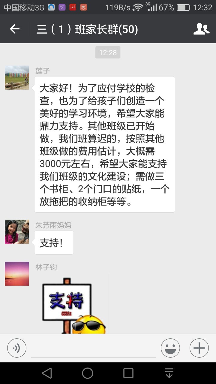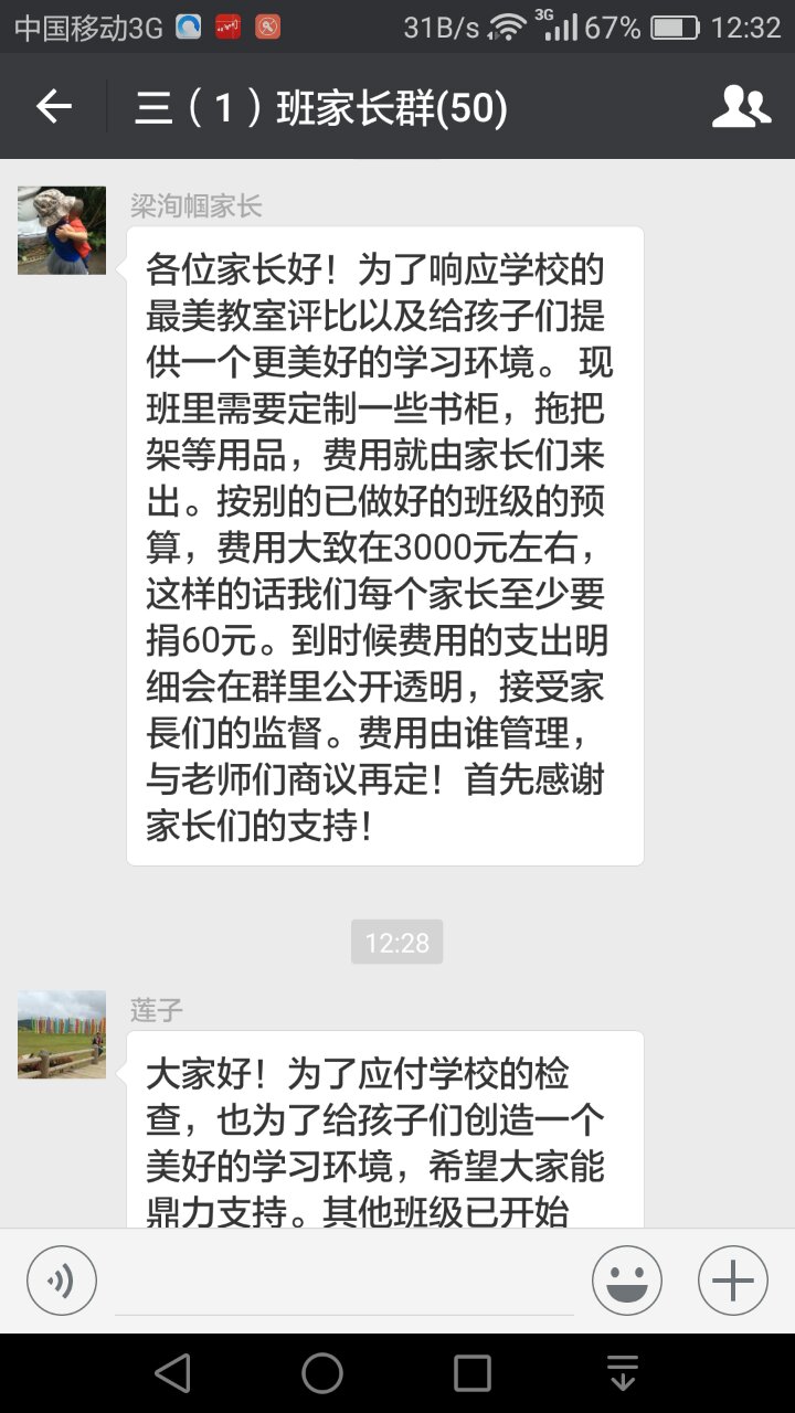 现在附上电白区第一小学三(1)班的家长微信群上面的图,望教育局能正视下,别总是出所谓评比,所谓比赛又要家长掏钱。。