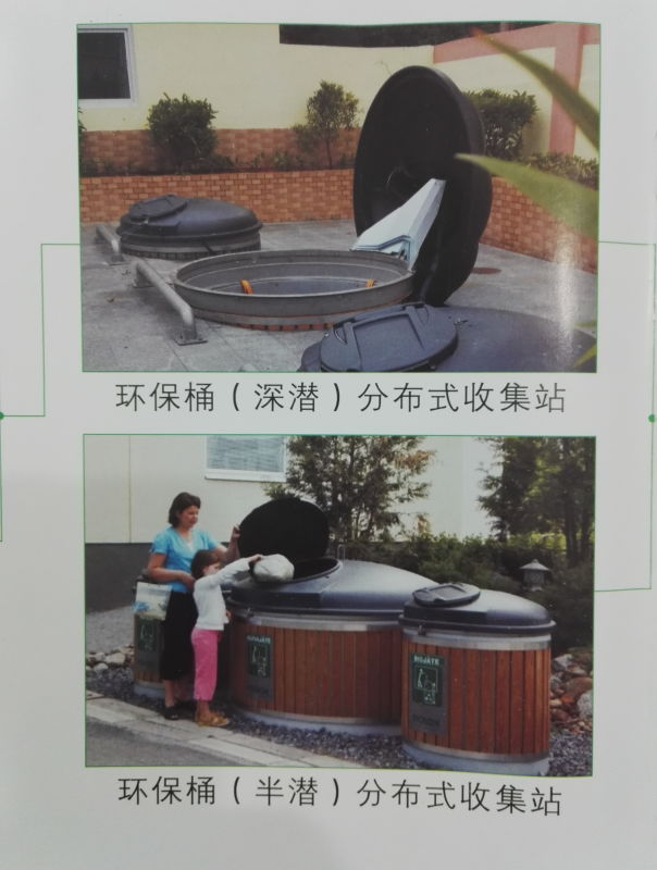 [SIZE=16pt][FONT='&#23435]地埋式垃圾收集桶(简称地埋式垃圾桶)是将[/FONT][/SIZE][SIZE=16pt][FONT='&#23435]垃圾[/FONT][/SIZE][SIZE=16pt][FONT='&#23435]桶([/FONT][/SIZE][SIZE=16pt][FONT='&#23435][/FONT][/SIZE][FONT='&#23435])[/FONT][SIZE=16pt][FONT='&#23435]埋入地下,只有桶(箱)盖在地面上,市民扔垃圾的时候只需轻轻踩一下垃圾桶(箱)旁的踏板,垃圾桶(箱)的盖子会自动打开,市民可将垃圾扔进去。这种新式的垃圾桶外形与普通露天垃圾桶大小差不多,两种垃圾桶的差别在于:传统式的普通露天垃圾桶是直接放在地面上,垃圾容易散落在外面会,有臭味,经过此处的市民会闻到垃圾的气味,不够环保。而地埋式垃圾桶(箱)的好处是既避免垃圾散落在外面,经过此处的市民也不会闻到垃圾的气味,比较环保。[/FONT][/SIZE]
