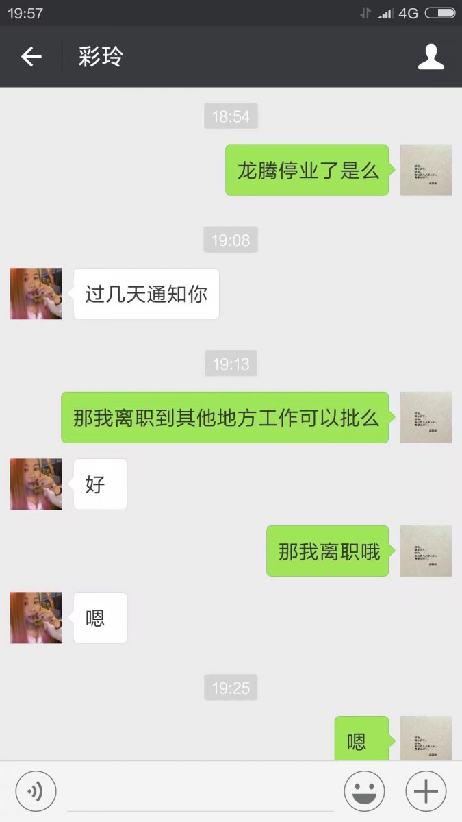 陌 陌恋芯 幼儿园 注册 2017-04-22 消息 3 反馈评分 0 点数 0 2017-04-22 #1 作为电白水东中心一家龙腾国际KTV场所,由于生意不好和经营不擅迟迟答应每月月末发的工资都找理由推迟下个月发。到现在已经整整拖欠两个月工资了。直到今日,龙腾KTV已经停业不再开放。答应的工资也未迟迟到手,公司欠了大部分公司员工的工资。无奈之何,所以发帖求各位网友求助,本人为龙腾KTV服务员,由于公司迟迟拖欠薪水的原因被逼没钱吃饭搭车,到现在还没找到新的工作和答复。本人决定4月24号到劳动局申请劳动仲裁。求路过的网友帮帮忙。本人第一次发帖。。。 附件 psb.jpg2.jpg 150 KB · 查看: 313 psb.jpg5.jpg 59.8 KB · 查看: 293 psb.jpg6.jpg 63.8 KB · 查看: 304 psb.jpg7.jpg 56.1 KB · 查看: 302