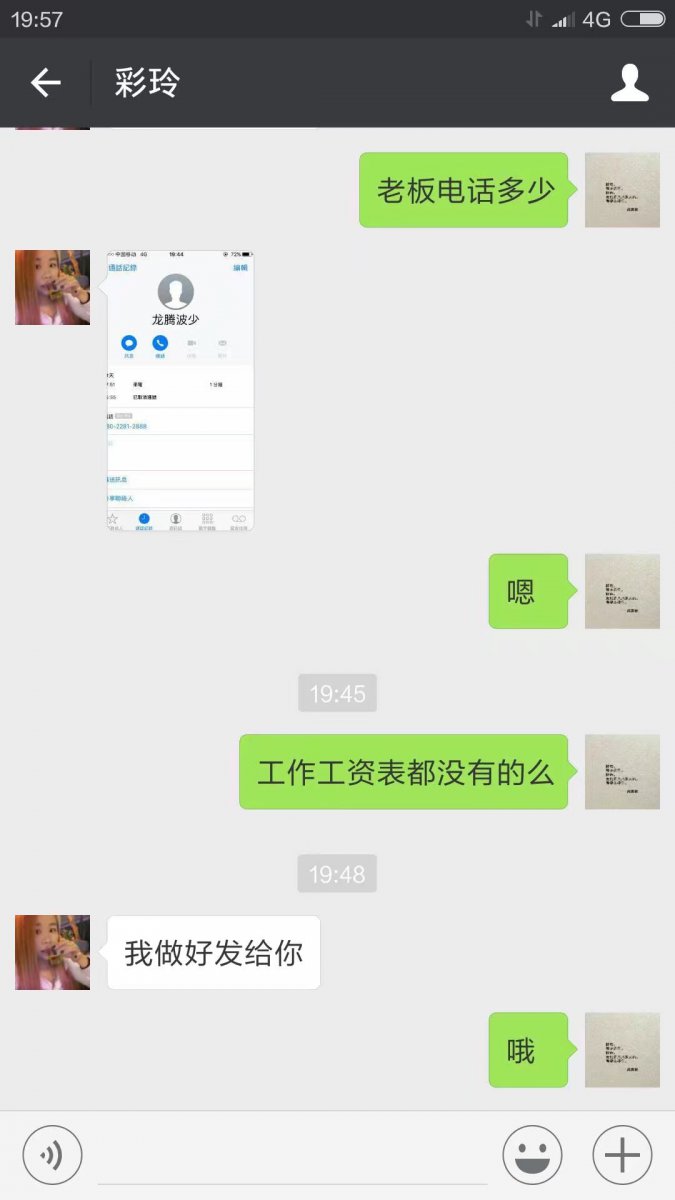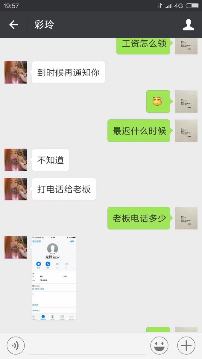 陌 陌恋芯 幼儿园 注册 2017-04-22 消息 3 反馈评分 0 点数 0 2017-04-23 #8 汪洋大海 说: 此类拖欠员工工资现象很普遍,如柏某房地产公司浪某轩小区物业拖欠员工工资达七个月,投诉有关部门也没用,已不了了之,他们放弃了。 点击展开... 我们场所的是水东镇中心龙疼国际酒店KTV的,2013年就建立对外开放了,刚开放时生意不错,KTV员工很多,但后来经历一段时间生意不好就收水了。龙腾KTV之后又在今年年初开放,因为刚好过春节,来订KTV房间的人很多,但到现在不到3个月就不做了,一直拖欠员工的工资说迟点法,打电话问总经理说发薪水具体时间总经理也说暂时不知道。很无奈,只想快点把自己在公司劳动成果得到的薪水快拿到,一年一度的劳动节五一就到了,这还有天理么?希望各网友帮忙转发