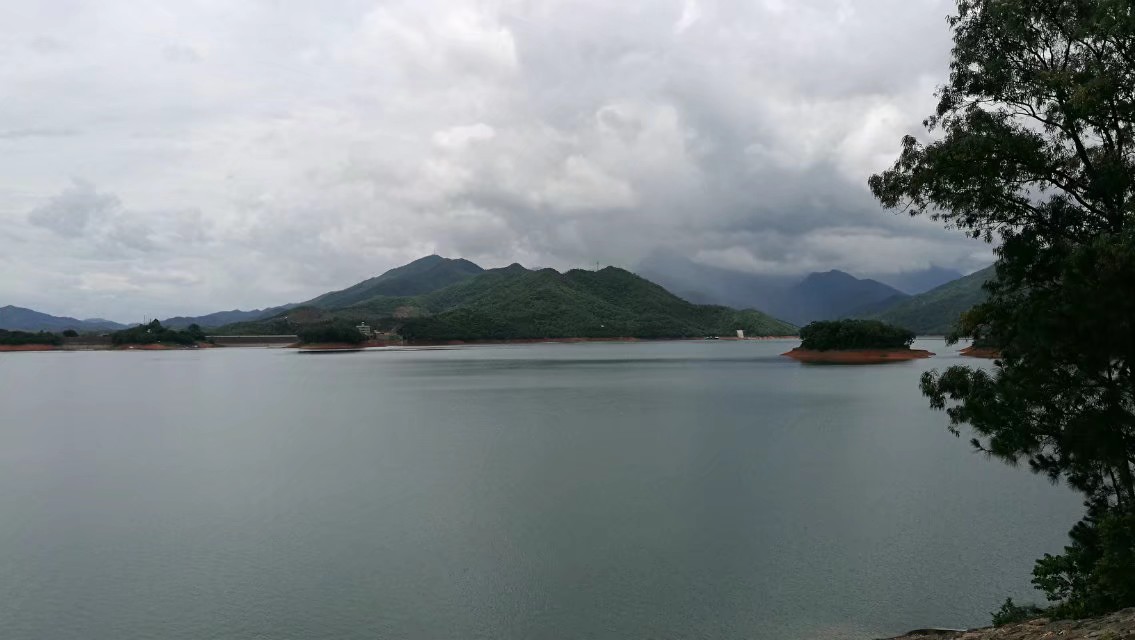 罗坑水库,自然生态,天蓝水清,水天一色,沿岭车道,盘旋若蛇,山林幽静,松风送爽,好一个风景区。